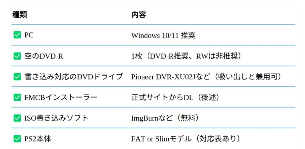 📀 FreeDVDBoot 対応表(PS2型番別)