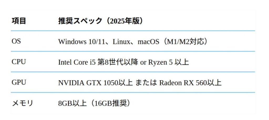 • ✅ 推奨レベルのPC環境がある(特にCPU)