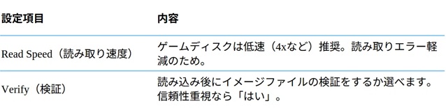 不安な場合は、読み取り速度を落とすことでエラーが減るケースもあります(環境次第)。