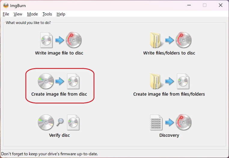 2-2. 「Create image file from disc」を選択