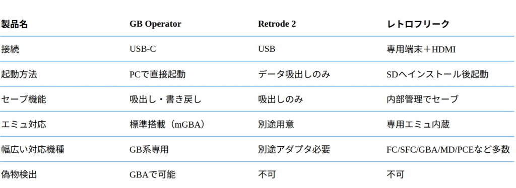 🔁 他製品との比較(Retrode・レトロフリークなど)