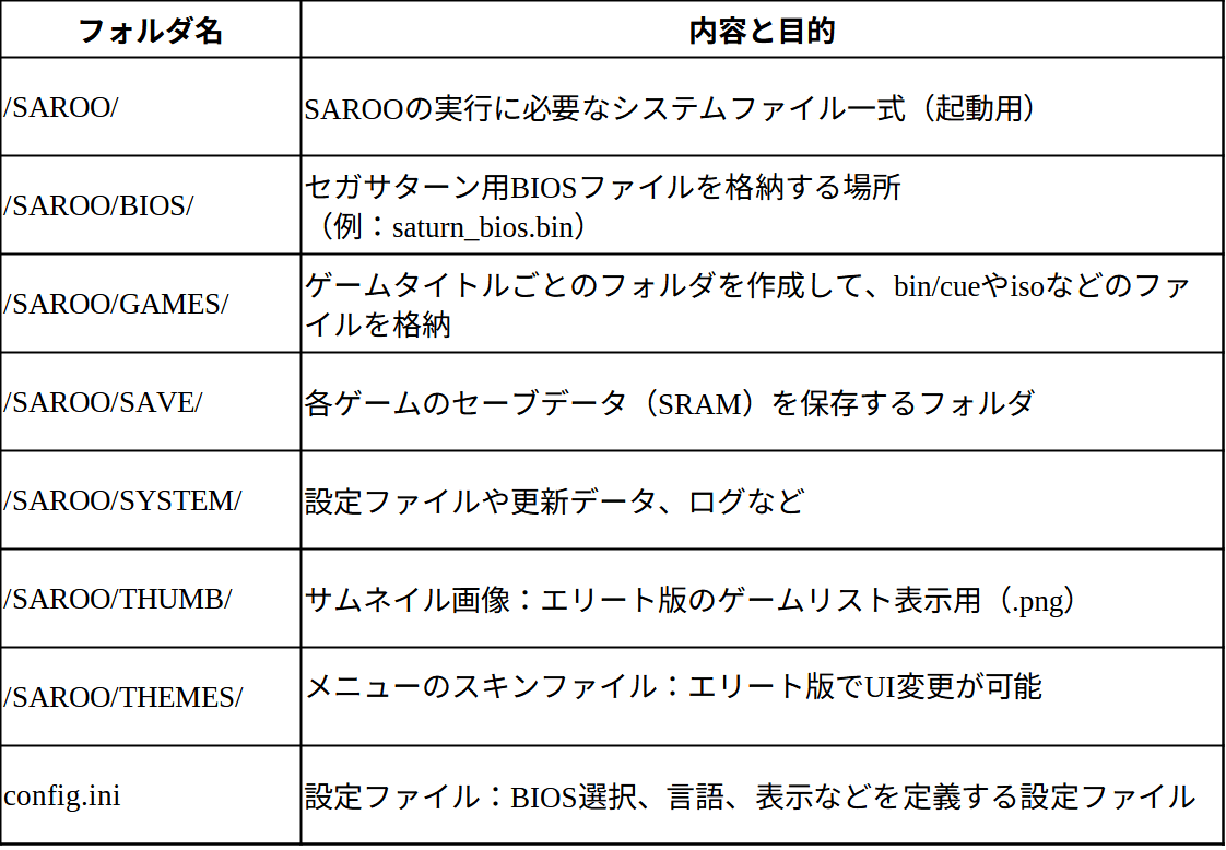 💿 SAROO用SDカードの構成例(フォルダ・ファイル)